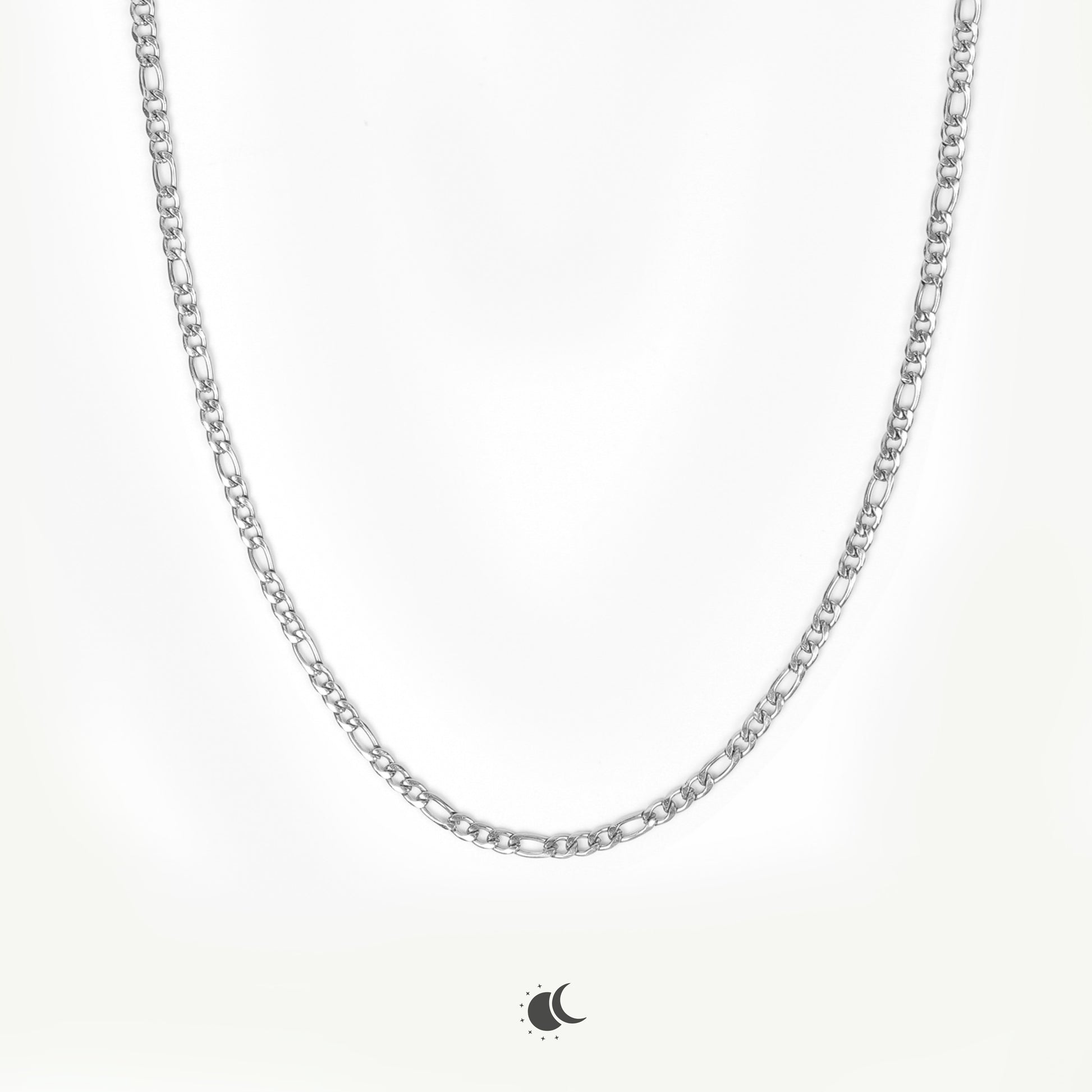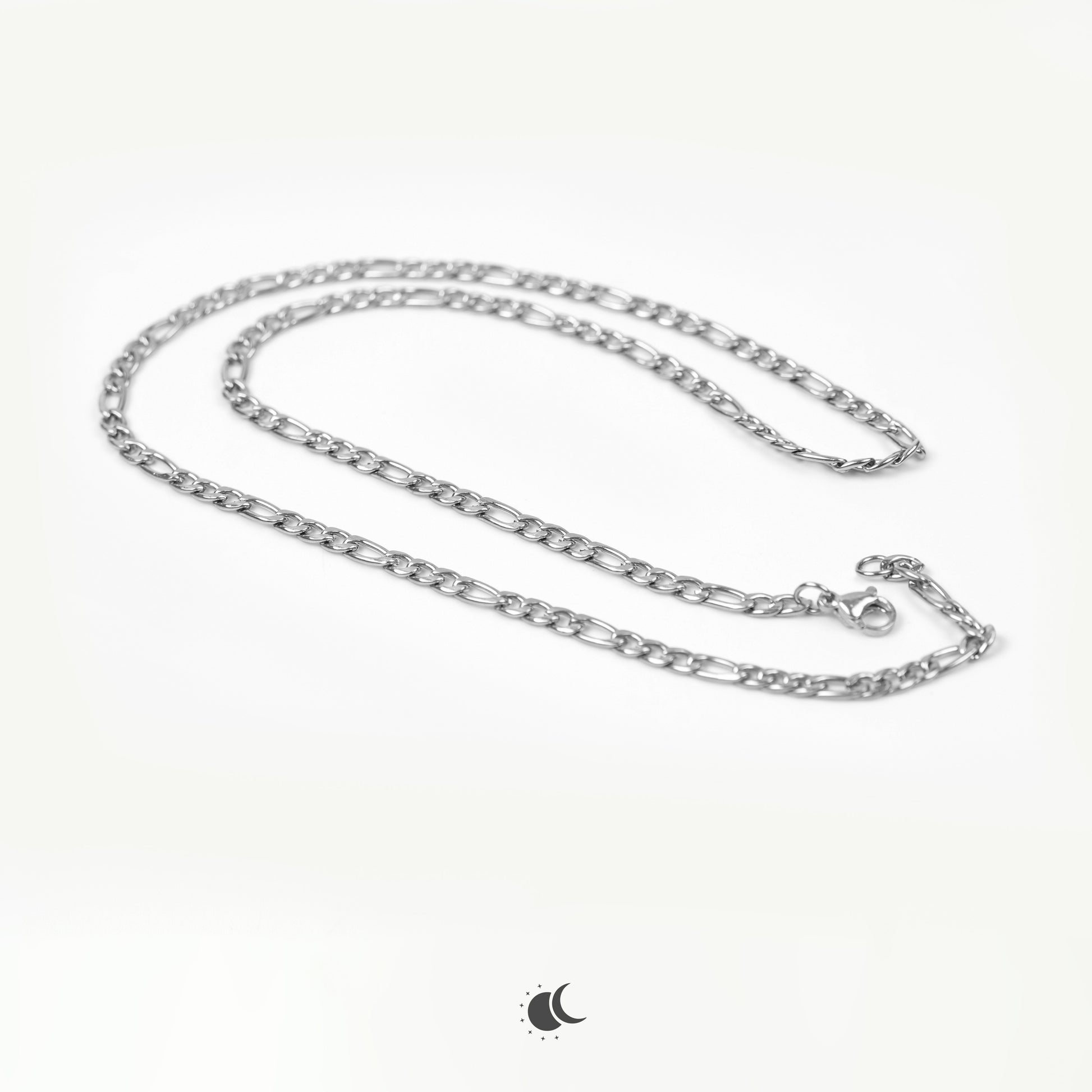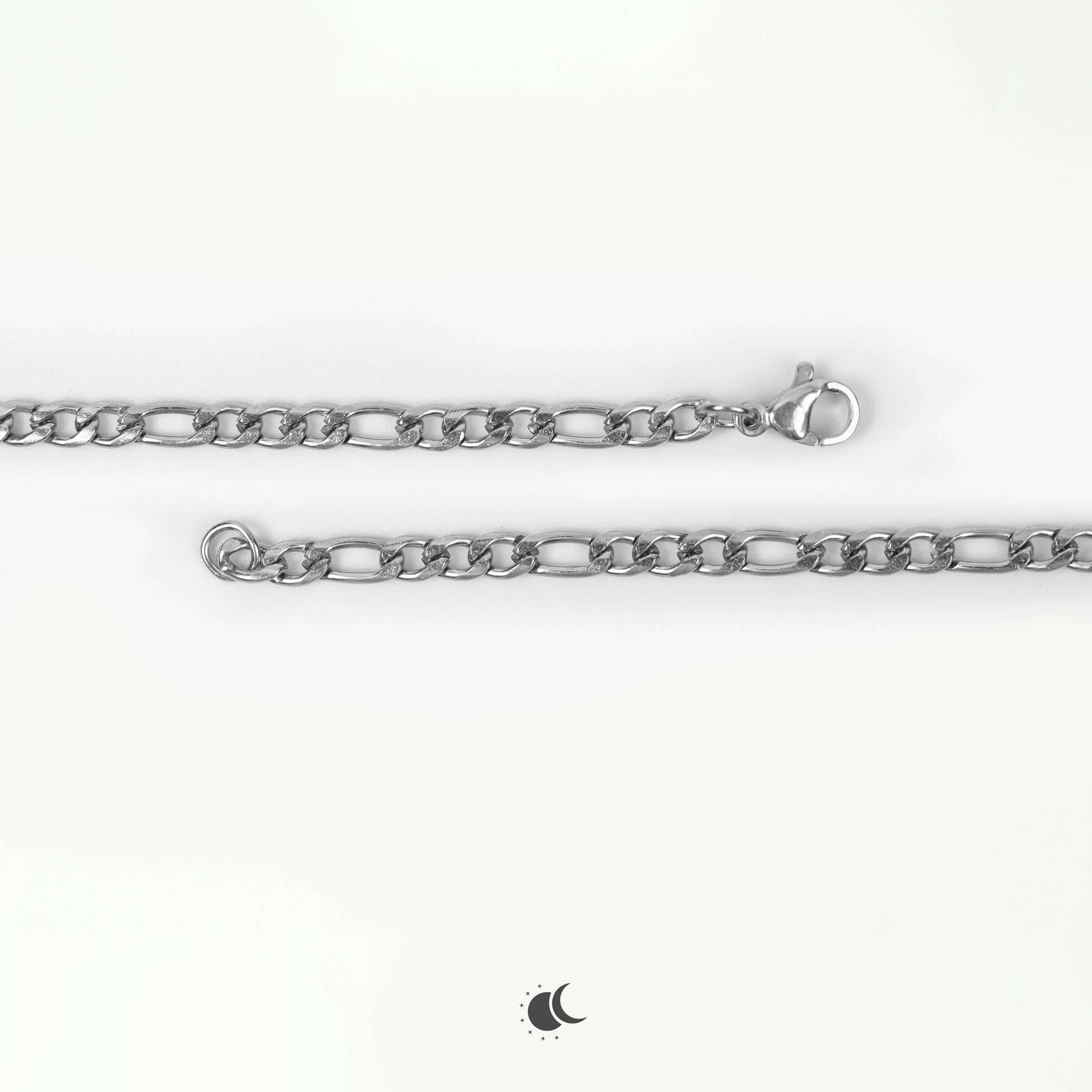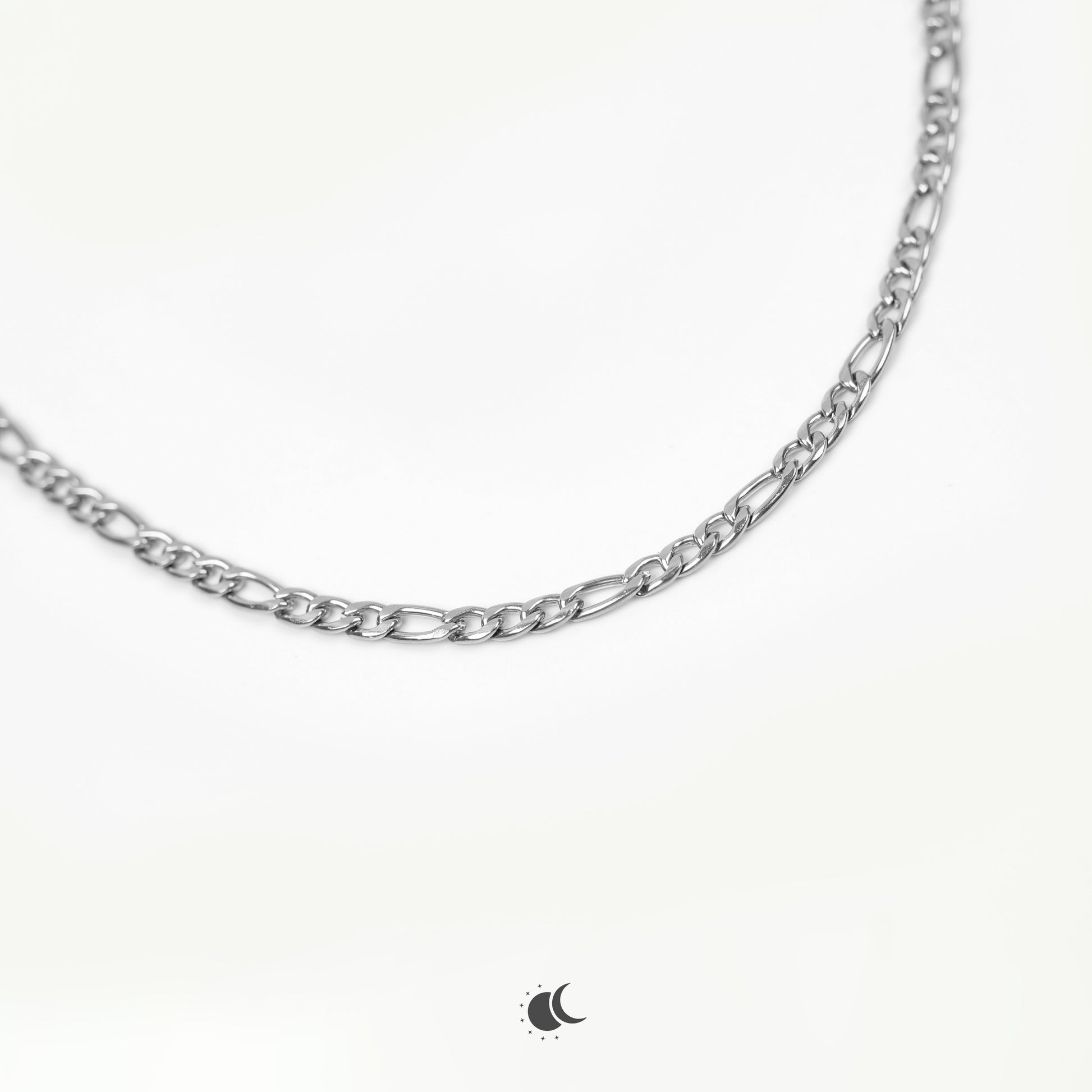 The Nero chain represents vice and luxury. The perfect fit for all wanting to make a statement. The chain is based on intricate Figaro chain loops intertwined with each other. An everyday wear piece that goes well with most of Kult Fiction chains and pendants.